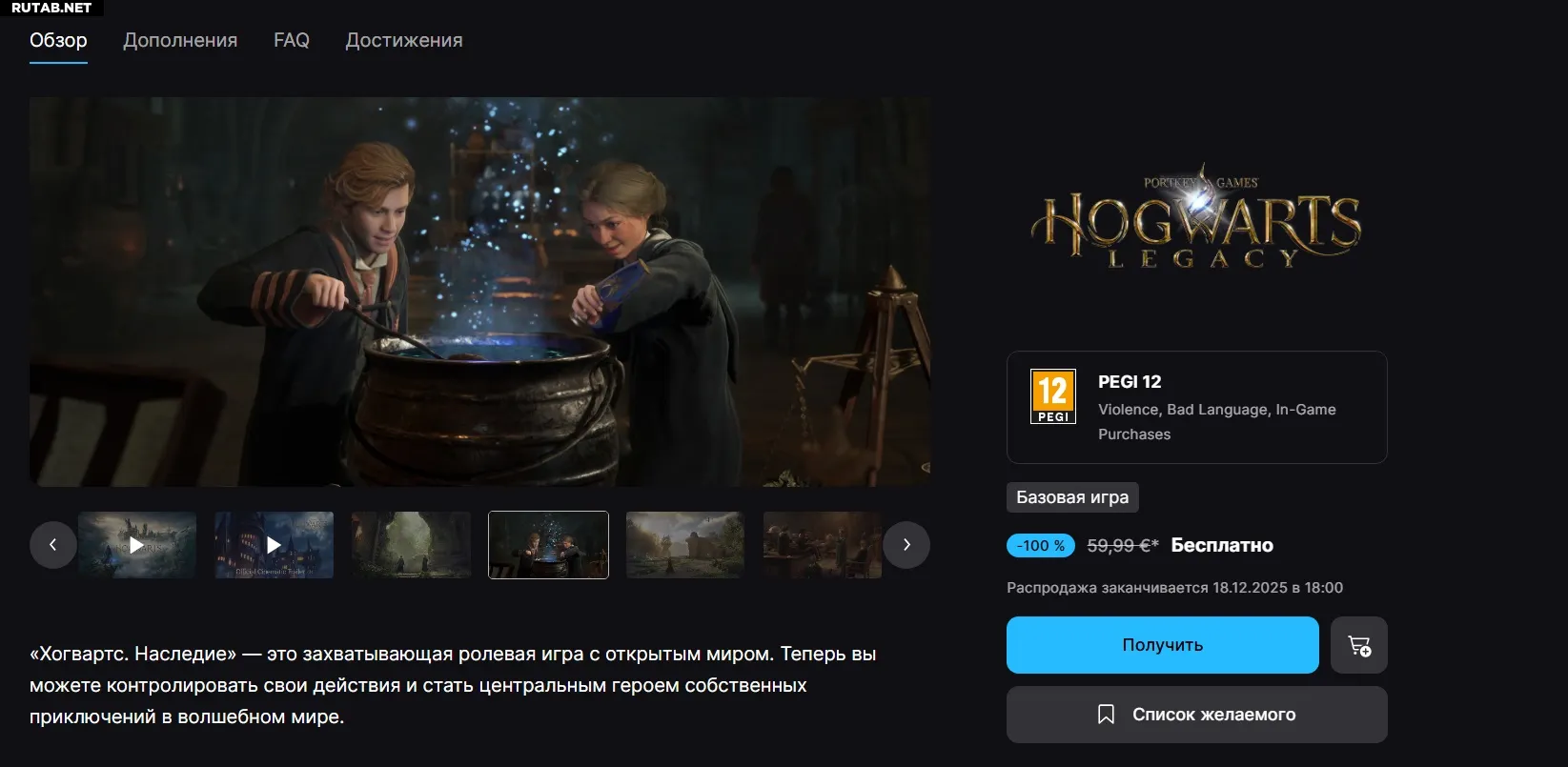 В рамках The Game Awards 2025 было объявлено, что популярная приключенческая игра Hogwarts Legacy станет бесплатным подарком в Epic Games Store. Акция продлится до 18 декабря 2025 года.