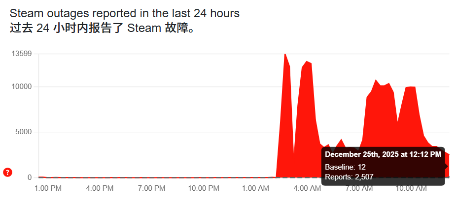 В канун католического Рождества, 24 декабря, сервис цифровой дистрибуции Steam столкнулся с масштабным сбоем. По данным сервиса Downdetector, множество пользователей не могли загрузить сайт и магазин платформы, а запуск клиента сопровождался длительными задержками.