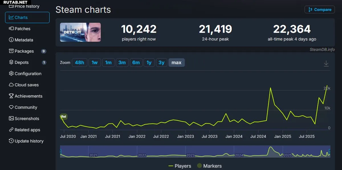 Благодаря распродаже игра обновила свой рекорд по пиковому количеству одновременных игроков в Steam. Согласно данным SteamDB, 22 декабря 2025 года в Detroit: Become Human одновременно играли 22 364 человека. Это превысило предыдущий максимум, установленный в октябре 2024 года.