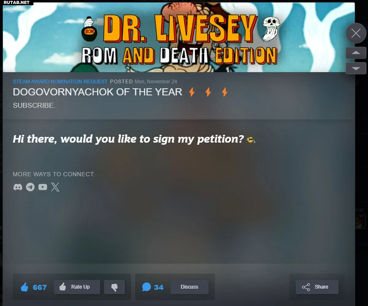 Однако реакция в комментариях оказалась неоднозначной. Многие пользователи выразили недовольство из-за игры Agafonoff «DR LIVESEY ROM AND DEATH EDITION», пародирующей популярный советский мультфильм «Остров сокровищ». Не поняв пародийного контекста, некоторые обвинили студию RWS в сотрудничестве с «плагиатором».