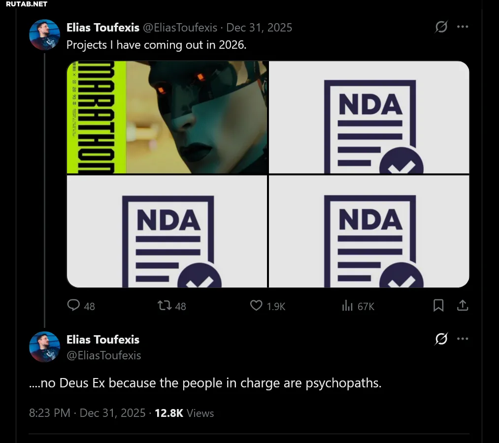 Пока будущее Deus Ex остается под вопросом, у самого актера много работы. Он занят в проекте Bungie — шутере Marathon, где выступает в роли голосового директора, а также озвучивает персонажей Войда и Рука. Игра, пережившая сложный период после анонса в 2025 году, должна выйти в марте 2026 года по цене около 40 долларов (~3200 рублей). Тоуфексис выразил уверенность в проекте, отметив впечатляющий мир, лор и актерскую работу.