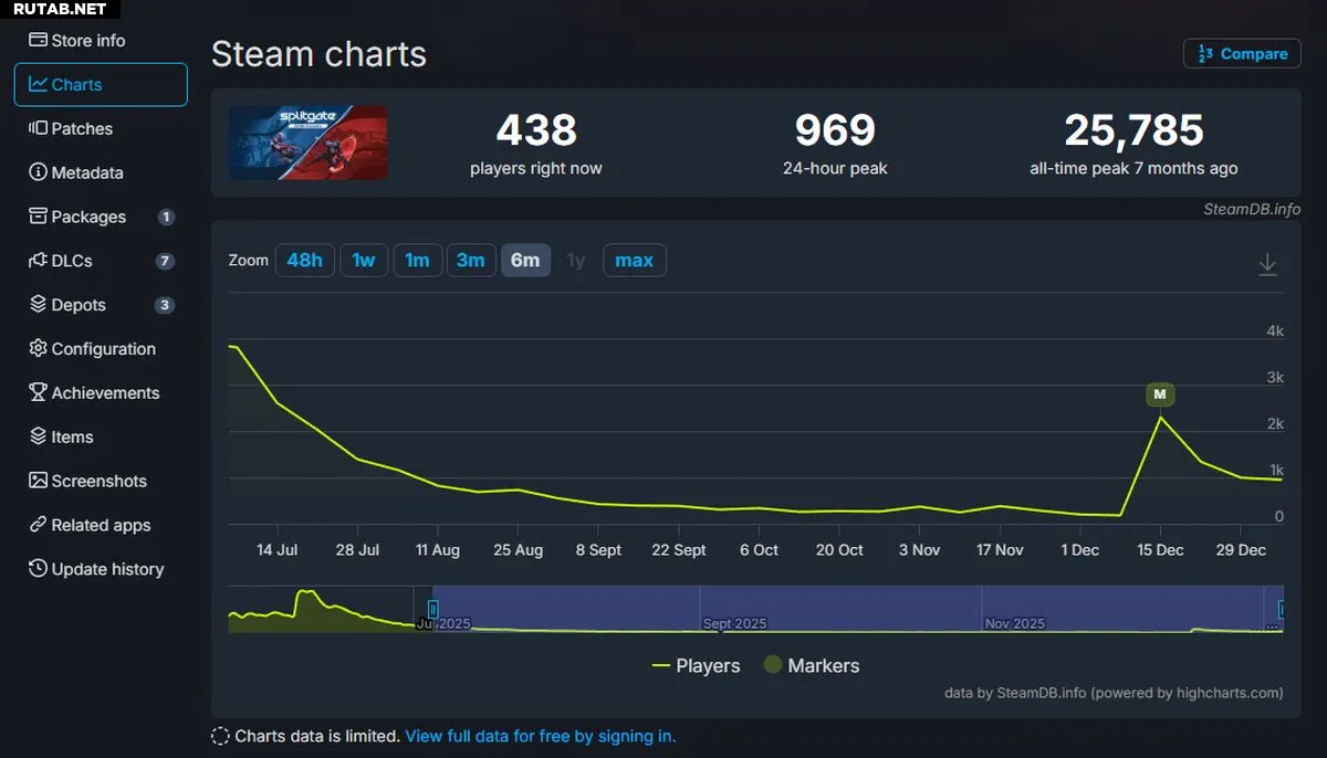 Пользовательская оценка на платформе Steam остается на низком уровне и составляет всего 62%. Однако главной проблемой стал стремительный обвал пикового количества одновременных игроков. Если на старте проект собрал почти 26 тысяч пользователей, то к концу декабря этот показатель рухнул до 1000, а сейчас и вовсе опустился ниже этой психологической отметки.