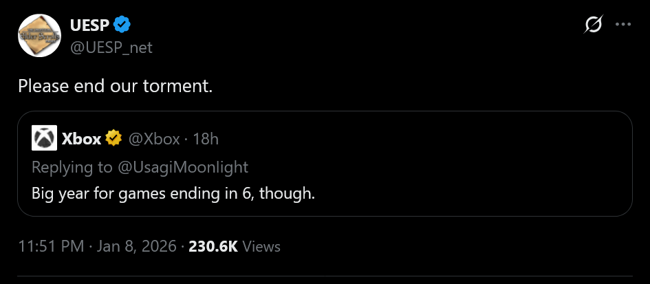 Бывший ведущий художник Bethesda Нейт Пёркипайл в интервью Esports Insider высказал мнение, что The Elder Scrolls 6 была анонсирована одновременно со Starfield в 2018 году, чтобы успокоить фанатов, разочарованных долгим отсутствием новостей о продолжении серии после Skyrim.