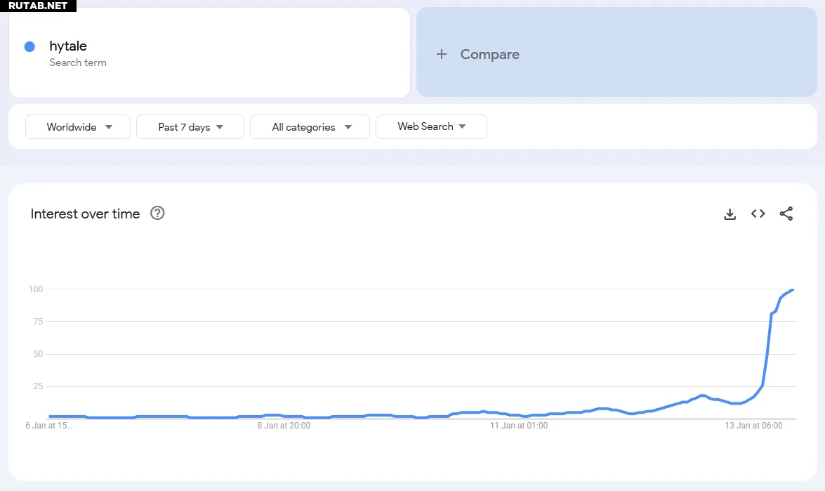 Быстрый взгляд на Google Trends показывает огромный скачок мирового интереса к поиску по запросу «Hytale» за последние 24 часа.