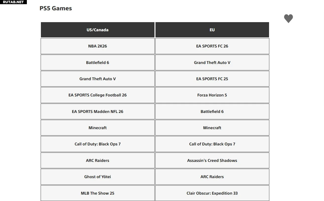 В целом, лидеры в регионах оказались вполне предсказуемыми. Верхние строчки заняли спортивные симуляторы, гонки, Minecraft, Grand Theft Auto V и новинки популярных шутеров — Battlefield 6 и Call of Duty: Black Ops 7.