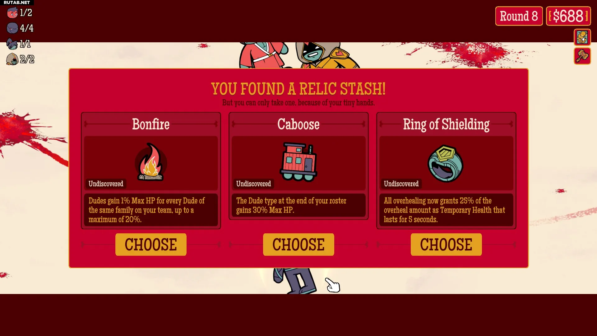 Механика игры напоминает классические рогалики: после каждого раунда можно нанять новых бойцов, разместить объявление для привлечения определённого типа персонажей или получить одну из трёх реликвий, дающих постоянные усиления. Особенностью является система «оживления»: поверженных бойцов можно воскресить с помощью особого ресурса «сок чувака» (dude juice) или подождать несколько раундов.