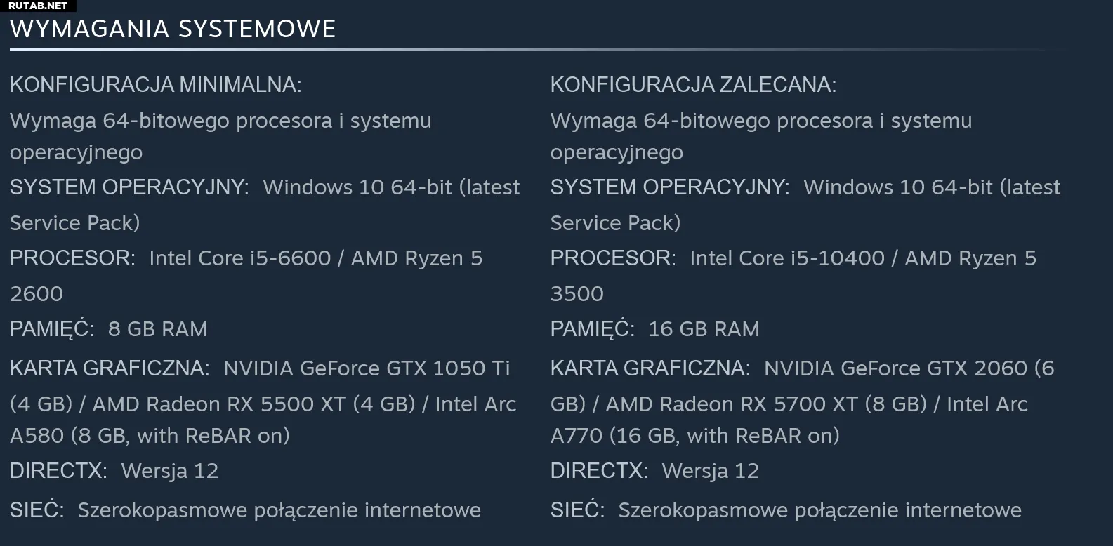 В рекомендуемых требованиях фигурируют такие скромные и уже устаревшие видеокарты, как RTX 2060 (6 ГБ VRAM) и Radeon 5700 XT (8 ГБ VRAM). Рекомендуемый процессор — также уже не новый Ryzen 5 3500 или Intel i5-10400. Игра обойдётся и без рекомендуемого отраслевого стандарта в 32 ГБ ОЗУ, довольствуясь 16 ГБ (что является хорошим решением при нынешних высоких ценах на память).