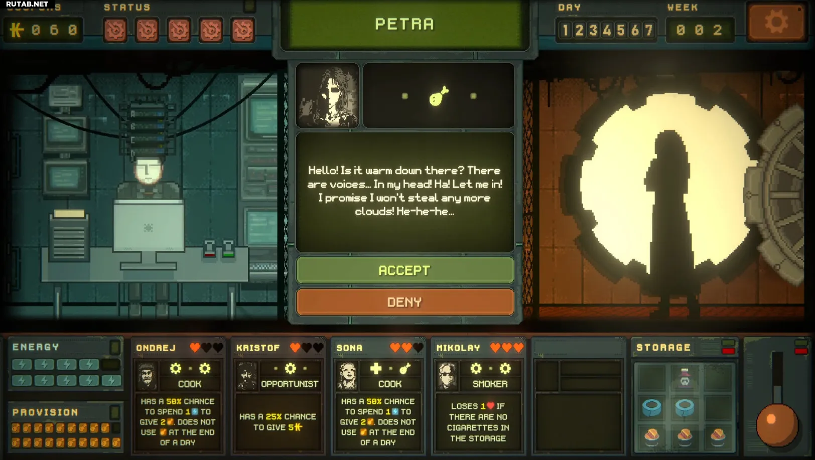 Одной из ключевых механик станет решение о том, кого впускать в бункер. Новые жильцы могут оказать ценную помощь или, наоборот, стать причиной катастрофы. Однако угрозы будут исходить не только от людей: игрокам придётся справляться с поломками оборудования, внутренними конфликтами и внешними опасностями.
