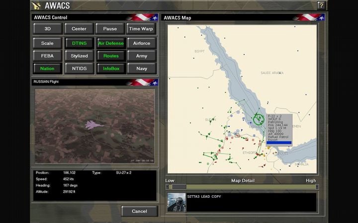 Уникальным элементом геймплея остаётся роль командира самолёта ДРЛО (AWACS). Игрок не только пилотирует истребитель F-22, но и может в любой момент взять под контроль всю зону боевых действий, наблюдать за каждым самолётом на театре военных действий и отдавать приказы на перехват подчинённым машинам.