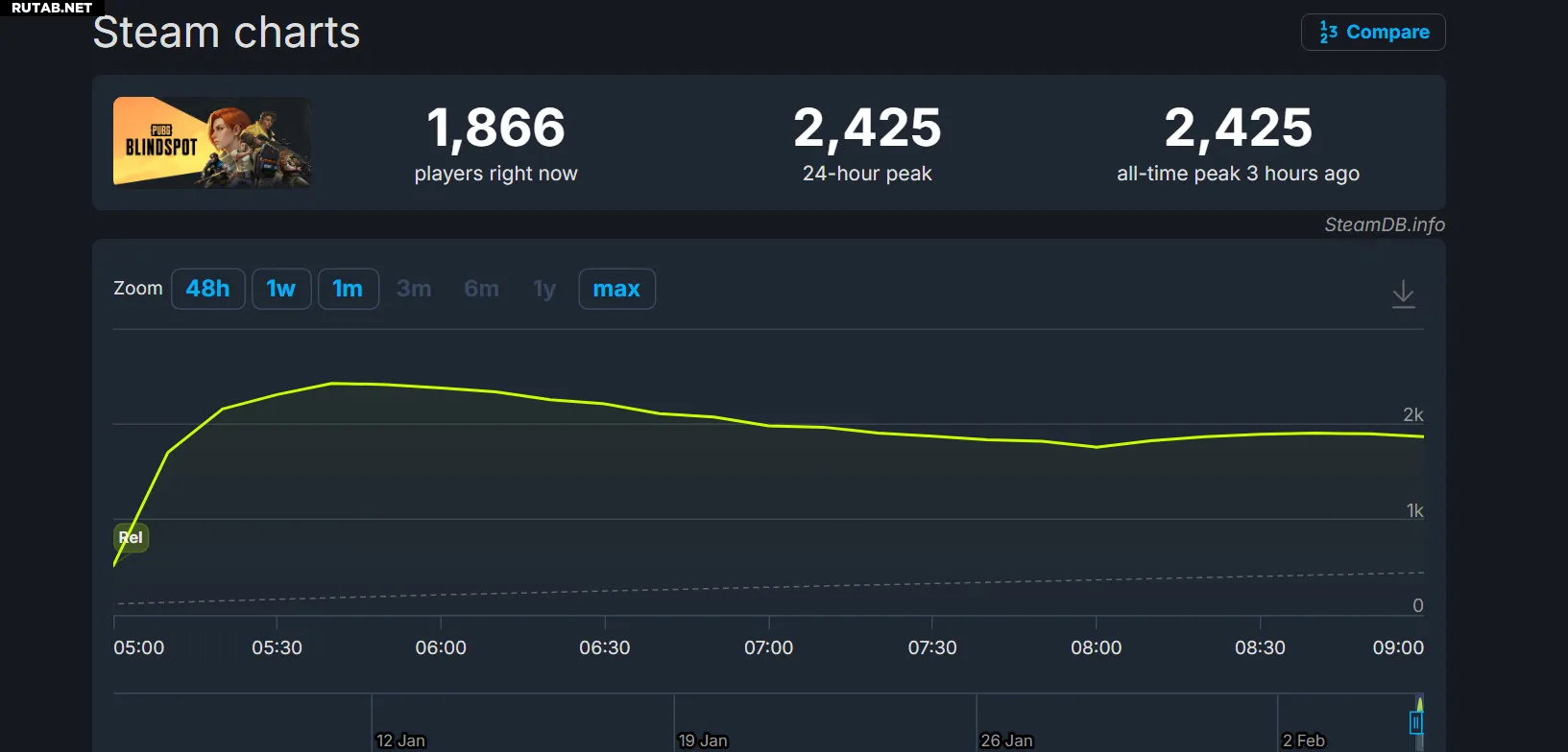 Пиковое количество одновременных игроков в PUBG: Blindspot приблизилось к отметке в 2,5 тысячи человек. Ожидается, что в ближайшее время этот рекорд может быть обновлен.