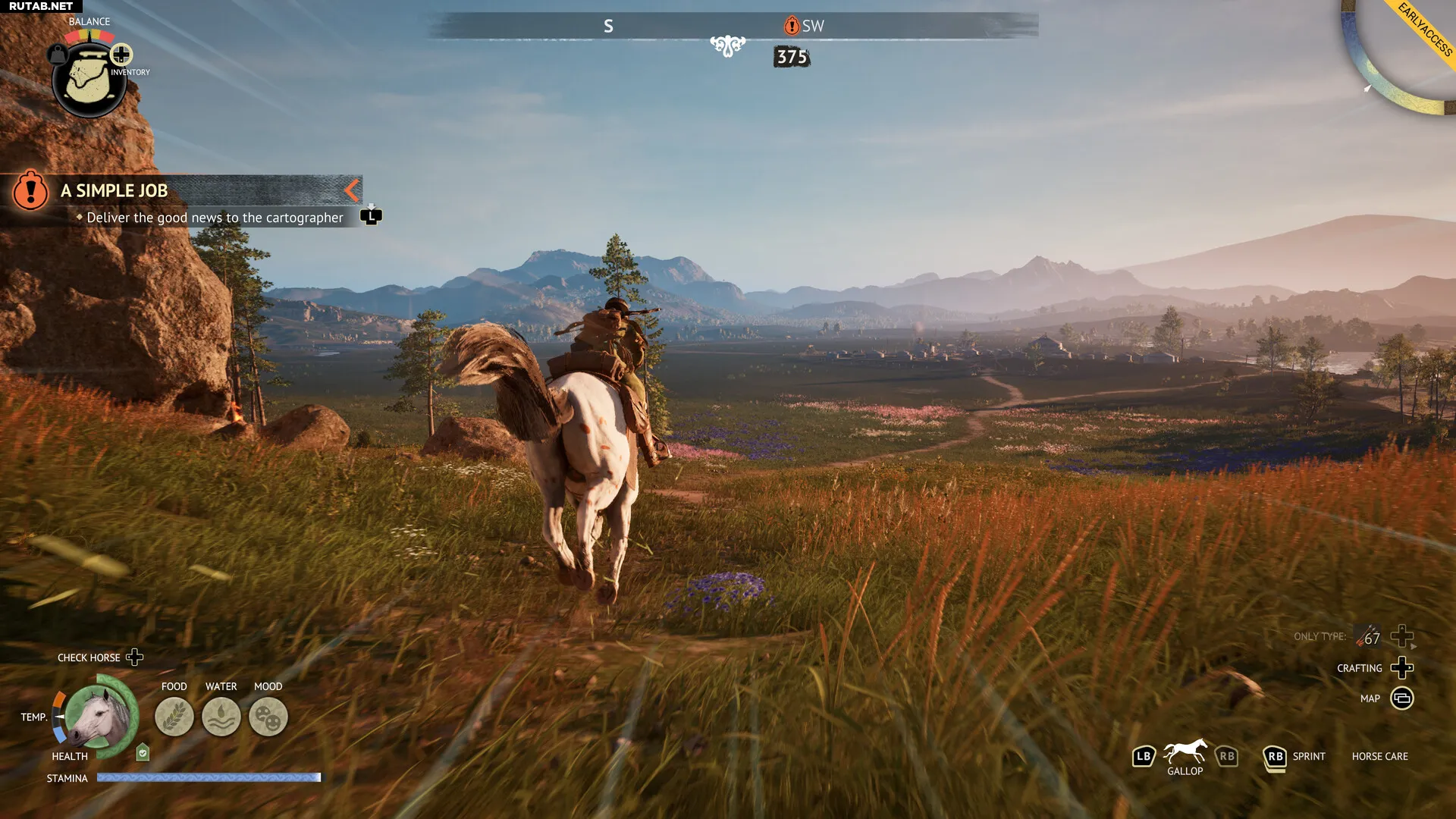 В пути за лошадью требуется уход: её нужно кормить, давать отдых, чистить копыта и шерсть. У животного ограниченный запас сил, а его плохое настроение, голод или запущенность могут привести к проблемам в критический момент. Конь также реагирует на окружение, погоду и хищников — его может испугать стая волков или медведь.