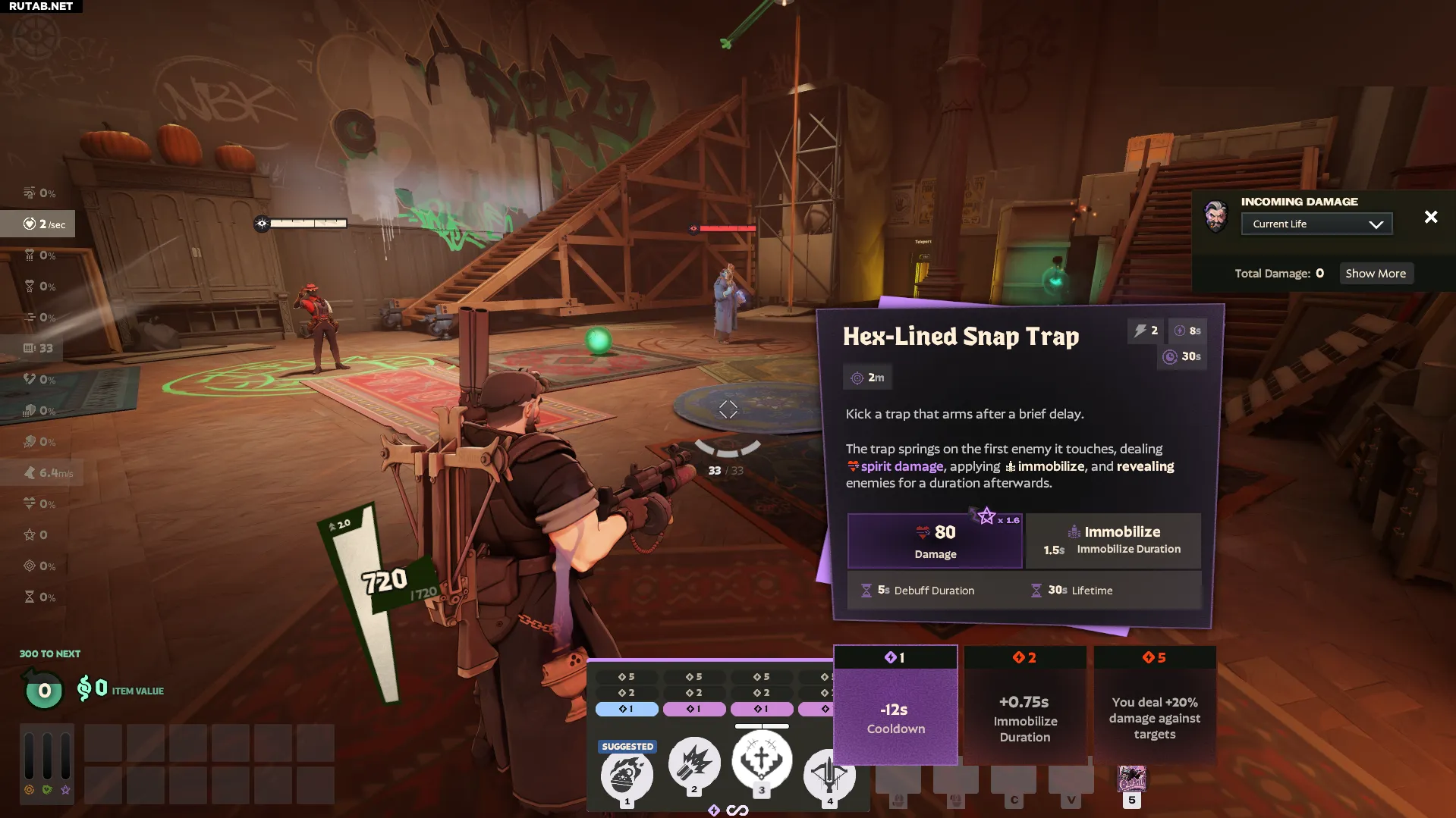 - «Капкан с проклятой леской» — устанавливает ловушку, которая обездвиживает и раскрывает врага, а на максимальном уровне увеличивает получаемый им урон на 20%.