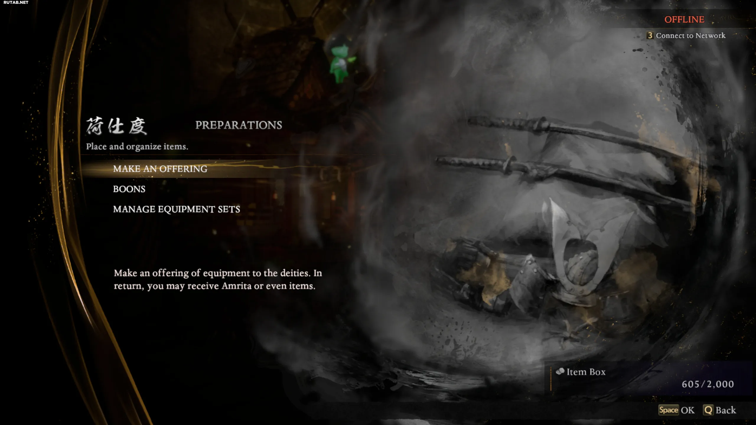 Вы могли заметить, что используемое снаряжение набирает «знакомство» по мере убийства врагов — это небольшая шкала прогресса в описании предмета. Это крайне важно, потому что предметы с высоким уровнем знакомства стоят гораздо больше Амриты, когда вы подносите их в святилище. Сделать подношение можно, выбрав в меню святилища «Подготовка», а затем «Сделать подношение».