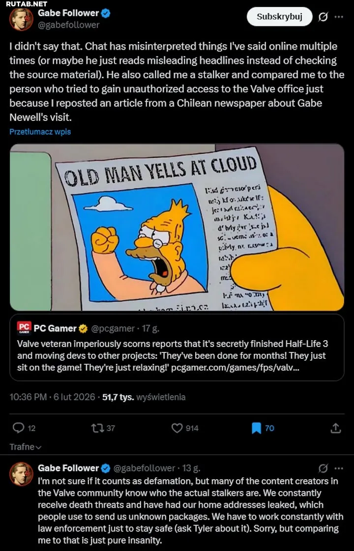 Инсайдер Gabe Follower ответил на обвинения в стокерстве от сценариста Half-Life