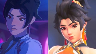 Далее представлена Ань Жань, героиня урона, сражающаяся веерами и огненной магией. Она мечет фаерболы, обращается в пламя для атаки и может принимать облик, похожий на феникса.