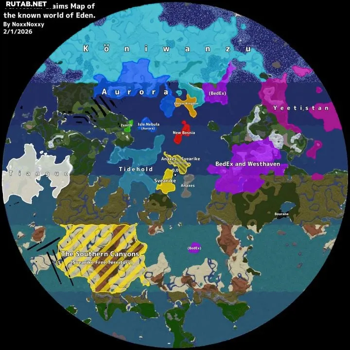 Из первоначального хаоса возник новый мировой порядок. Один из организаторов, пользователь с ником Tylerrr93, опубликовал политическую карту сервера, на которой видны четкие границы сфер влияния. Возникли целые нации со своей идентичностью и экономикой. Примером является «Йитистан», контролирующий грибные острова и монополизировавший рынок кожи и говядины, или изоляционистское «Тяньго», вдохновленное азиатской культурой. В свою очередь, «БедЭкс» — это город-государство, функционирующее как торговый хаб со своим сводом законов.
