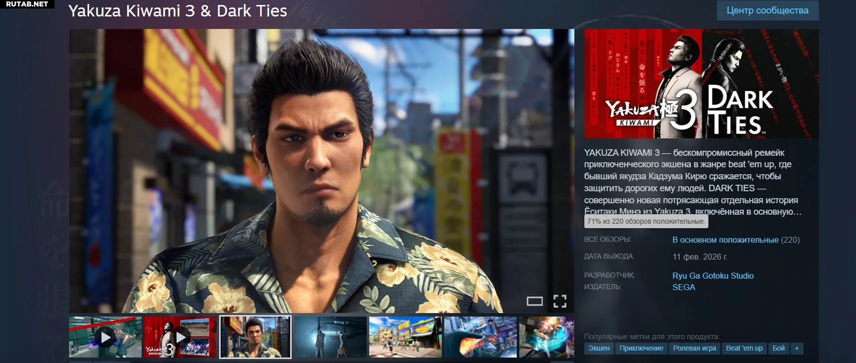 Yakuza Kiwami 3 и Dark Ties вышли на PC и консолях