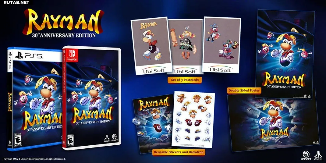 Rayman: 30th Anniversary Edition получит физическое издание, которое выйдет на PlayStation 5 и Nintendo Switch 26 июня 2026 года. Это стало возможным благодаря сотрудничеству с Atari, которая уже открыла предзаказ на продукт. Заявленная цена составляет около 2160 рублей. За эти деньги игроки получат не только копию игры, но и несколько тематических сувениров.