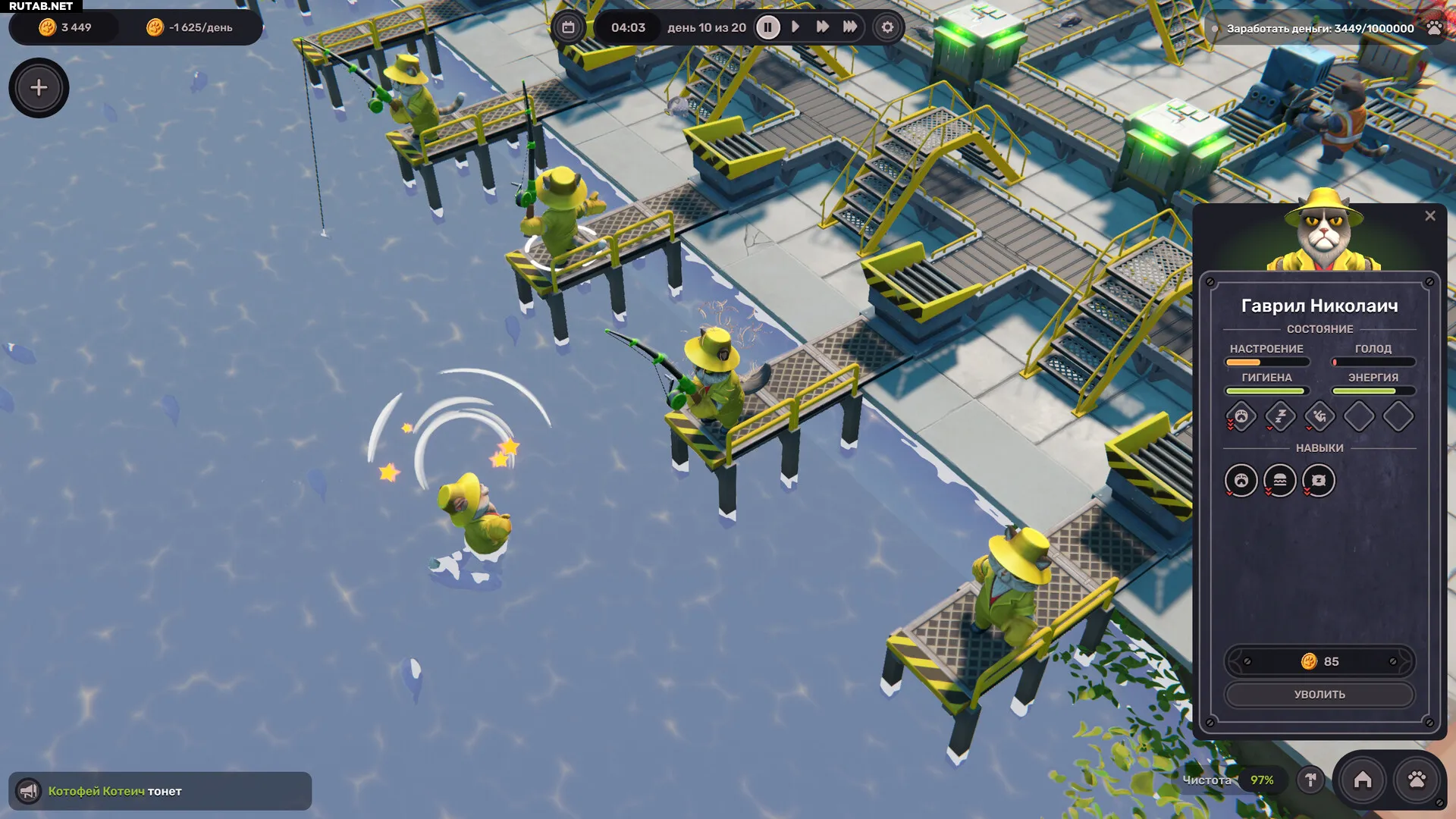 Каждый кот в игре уникален и обладает своими сильными и слабыми сторонами. Один может быть отличным строителем, но очень медленно переносить грузы. Другой — виртуозно управляться со станком, но при этом не способен удержаться от воровства рыбы.
