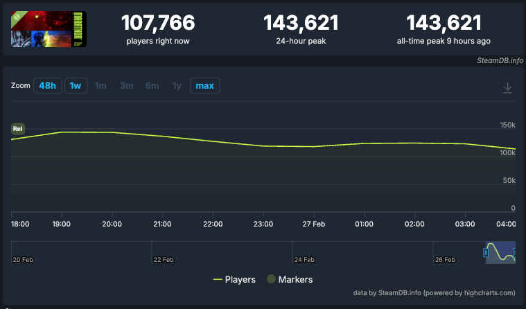 Результаты видны сразу. Предрелизные тесты Marathon стартовали вчера, и буквально за несколько минут на серверах Steam одновременно играло более 50 тысяч человек. Через час эта цифра превысила отметку в 100 тысяч одновременно подключённых пользователей, а в итоге только на платформе Valve удалось преодолеть рубеж в 143 тысячи заинтересованных игроков.
