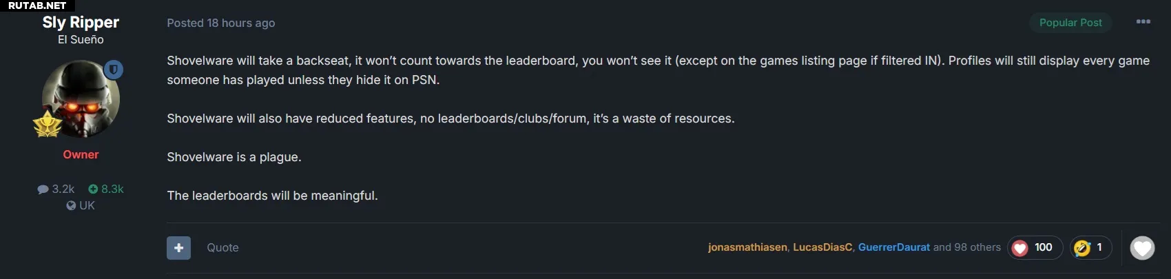 У shovelware также будут ограничены функции — не будет рейтингов, клубов и форумов, так как это пустая трата ресурсов.