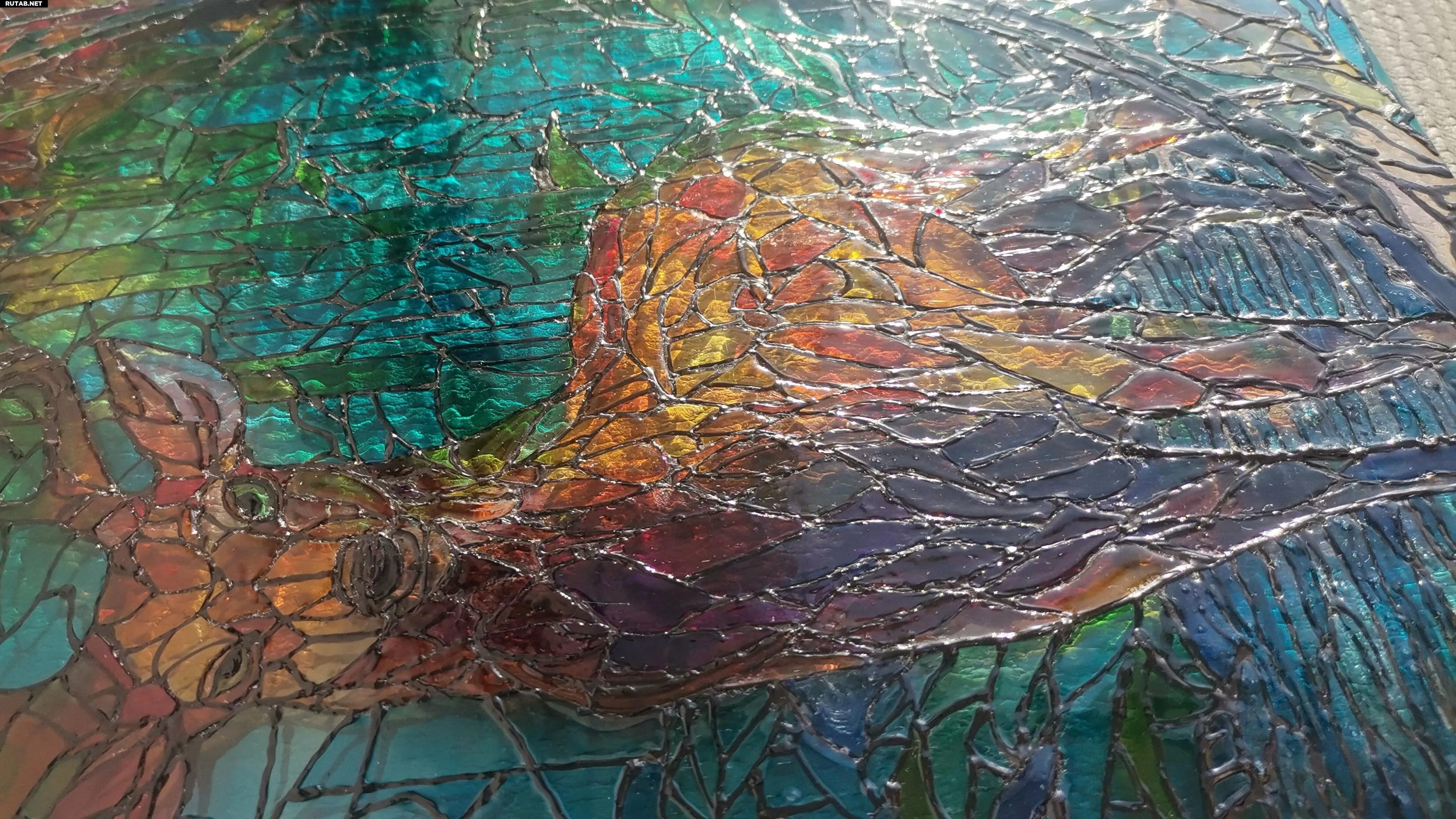 Для реализации задумки потребовались специальные краски для витражей и заказное стекло на замену стандартному тонированному. Контур рисунка — это специальная форма для витража, которая наносится на закалённое стекло. Затем каждый сегмент вручную покрывается специальным акрилом, который со временем затвердевает, окрашивая стекло, а не просто создавая слой сверху.