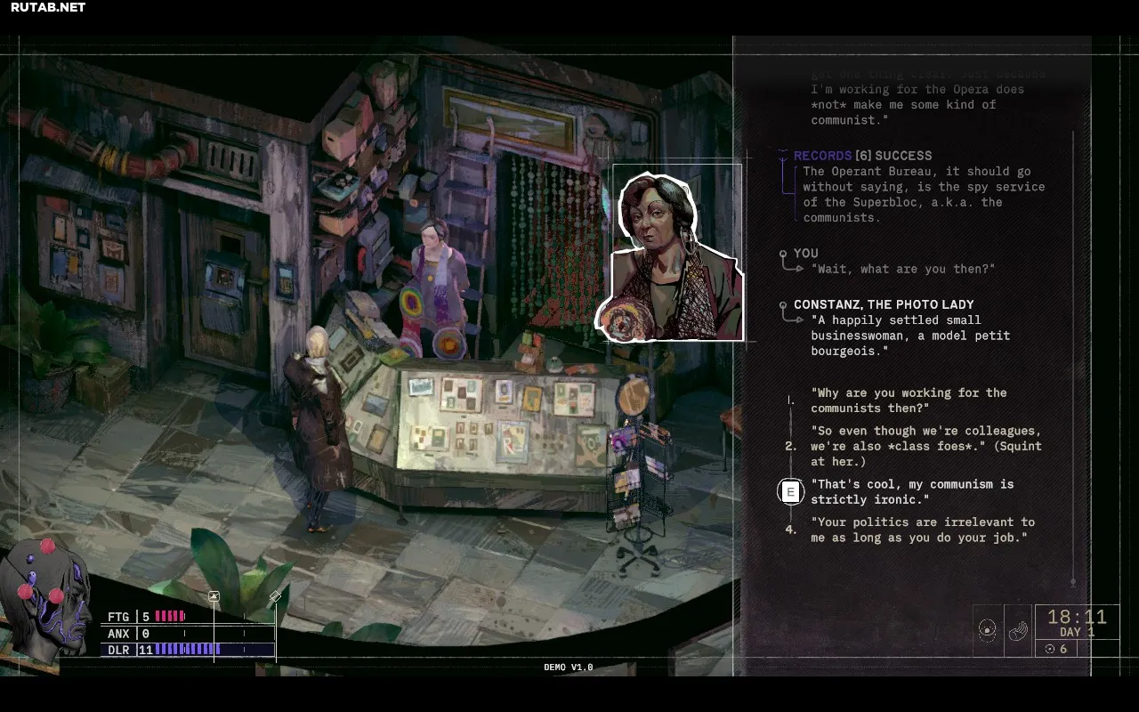 Он отметил ключевые отличия: вместо полицейского детектива — история про шпиона, а действие начинается в безопасном доме, а не в отеле. Однако, по впечатлениям редакции ресурса PC Gamer от демоверсии, игра всё же ощущается очень похожей на «Disco Elysium» по стилю повествования и взаимодействию с навыками персонажа.