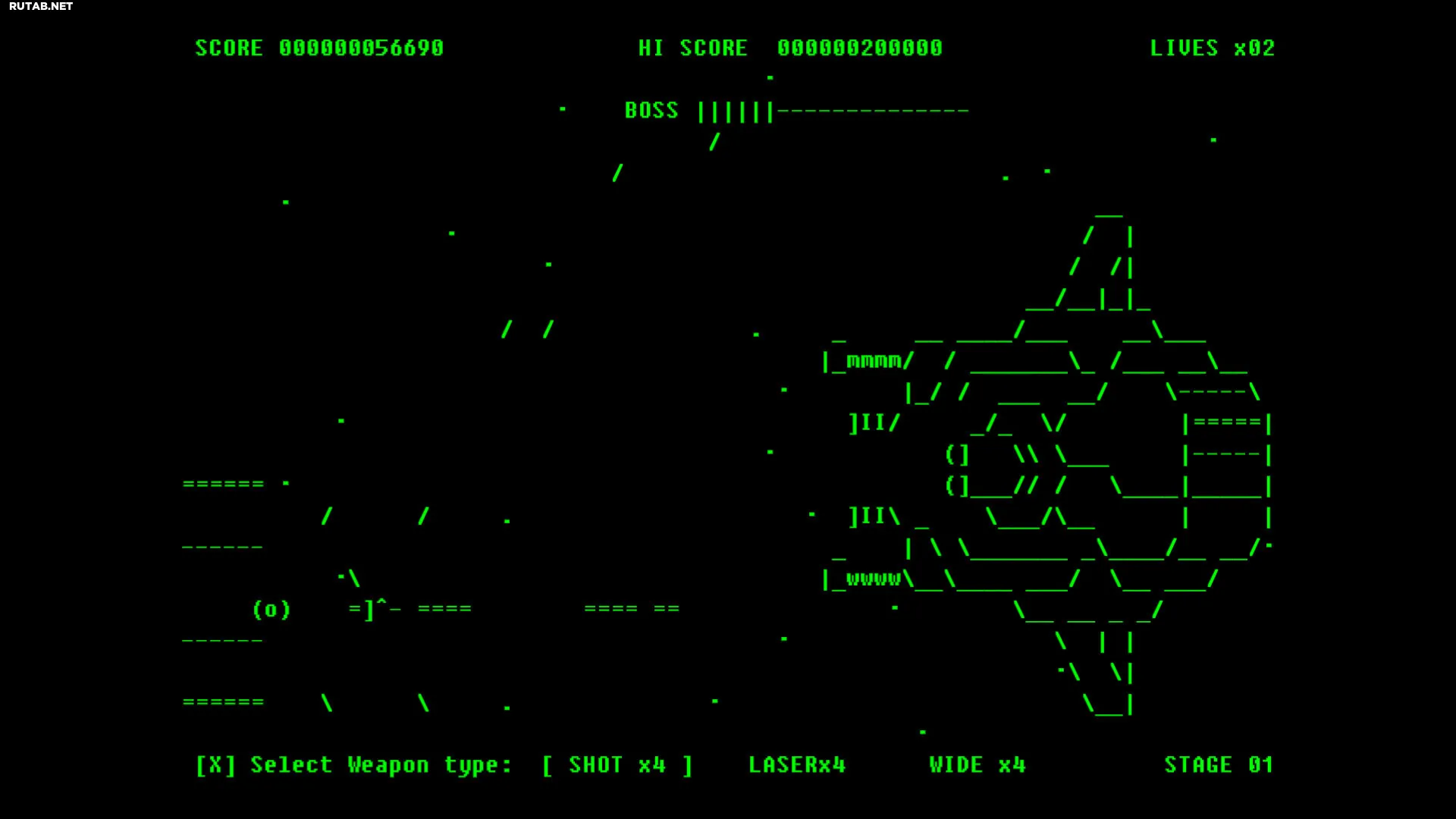 Как и можно ожидать от поклонников жанра, ваш ASCII-корабль в игре можно улучшать, получая впечатляющую огневую мощь. Кроме того, чтобы пройти Battle for Ascension, предстоит преодолеть пять длинных этапов, сразившись с гигантскими боссами в конце каждого уровня.