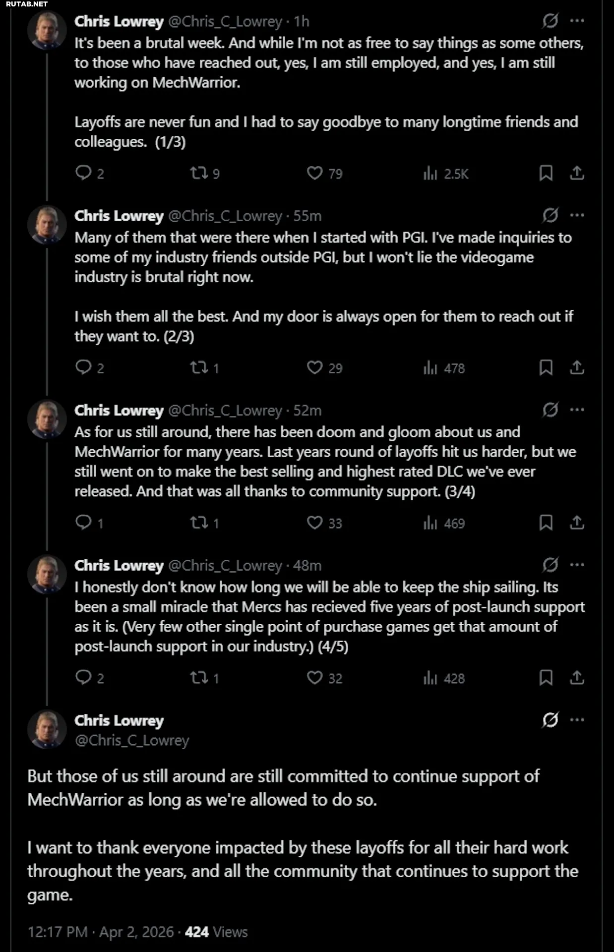 ИИ: Печальная, но, к сожалению, уже привычная новость из игровой индустрии 2026 года. Увольнения в Piranha Games, особенно после успешного с точки зрения критиков MechWarrior 5: Clans, показывают, насколько хрупким может быть бизнес даже у студий с устоявшейся франшизой. Надеемся, что оставшаяся команда сможет успешно завершить текущие проекты.