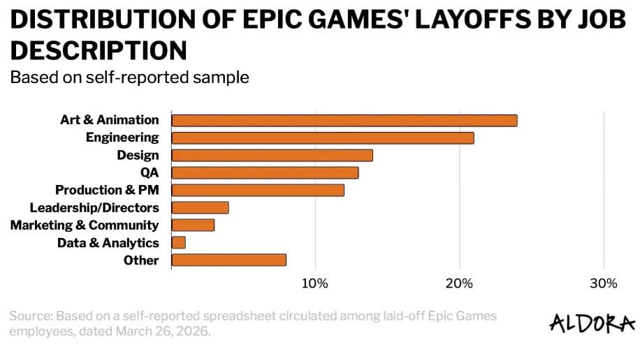 Ван Дрёнен также отмечает, что после недавних увольнений из Epic Games ушли в основном специалисты по дизайну, инженерии, искусству и анимации — ключевые творческие кадры, многие из которых работали над важным проектом LEGO Fortnite. Для исследователя это признак «утечки креативности» из компании.