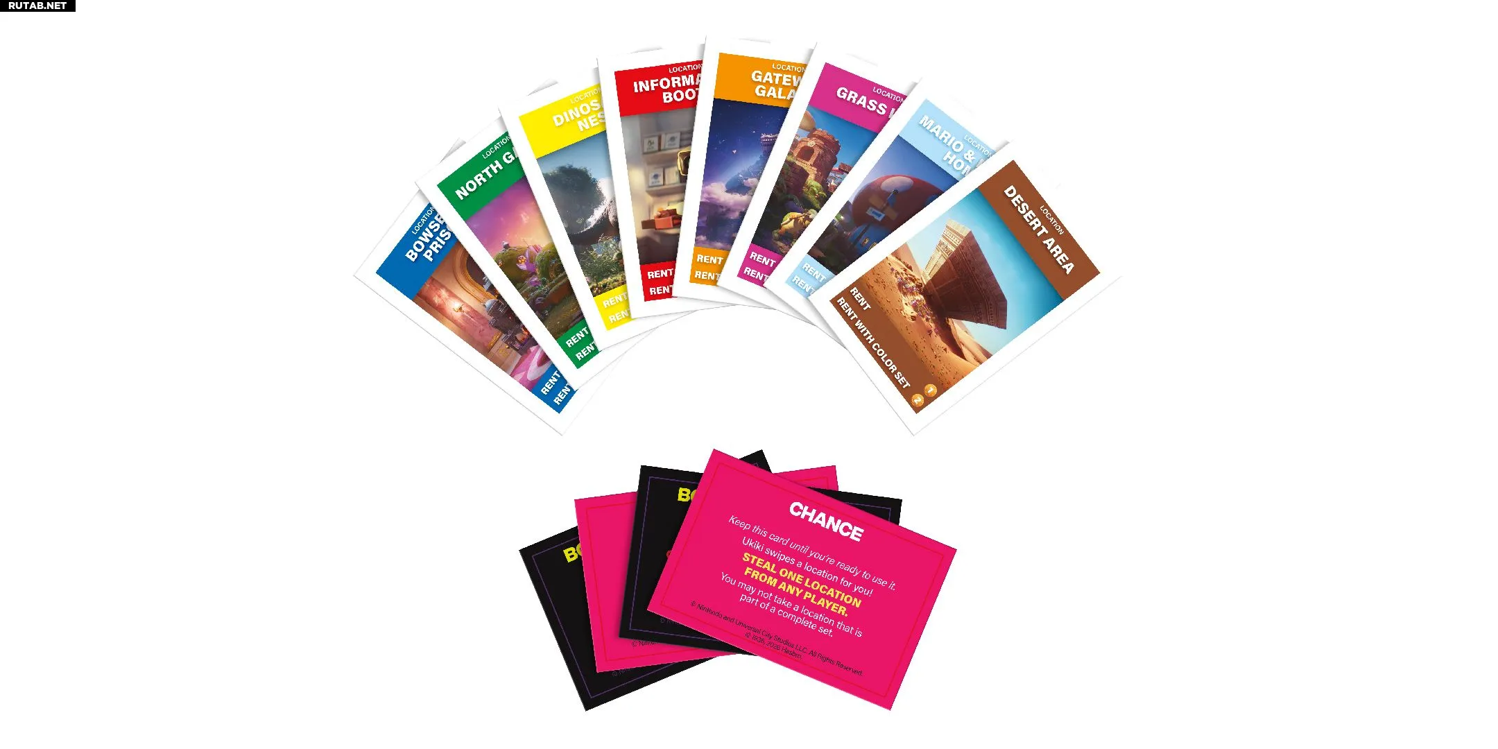 Легендарные участки в конце поля, Парк-Плейс и Бордуок, были переименованы в «Тюрьму Боузера» и «Обсерваторию Кометы». Некоторые локации, например библиотека, будут знакомы тем, кто играл в игры серии Super Mario Galaxy, в то время как другие созданы специально для фильма. В классическом стиле Monopoly четыре угловых клетки остались без изменений, так что «Бесплатная парковка» доступна даже в открытом космосе.