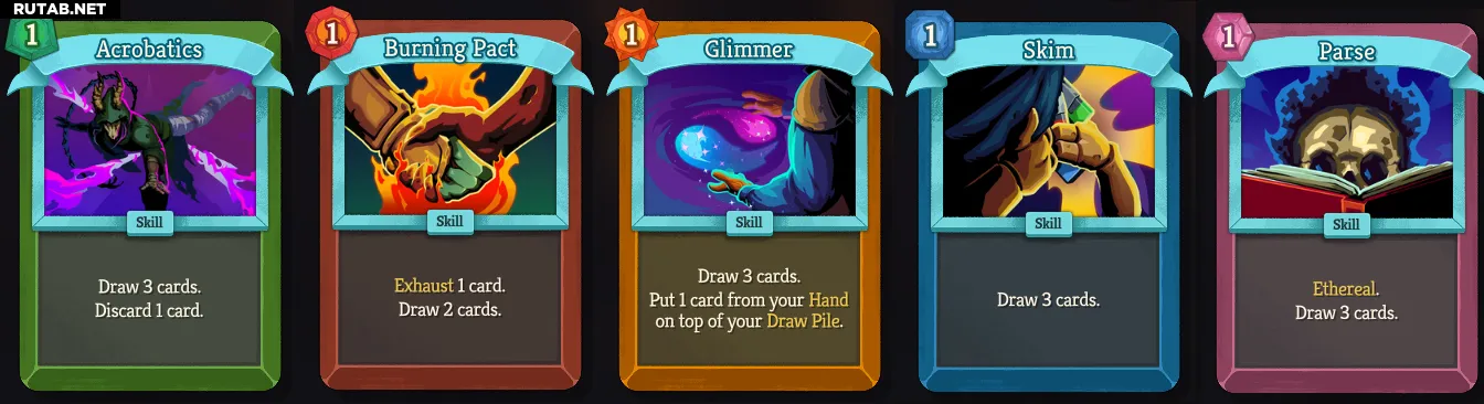 - Безмолвный (Silent) — в его случае Blade of Ink теперь накладывает ослабление, а классическая карта Acrobatics стала необычной картой.