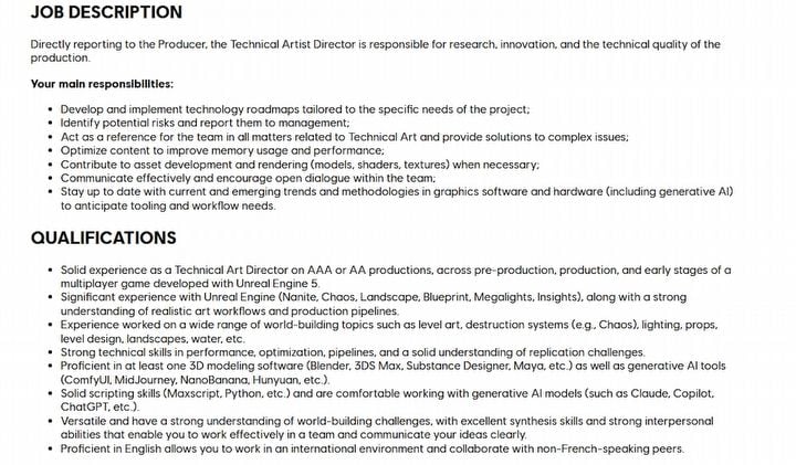 Что важно, Ubisoft прямо указывает, что ожидает от кандидатов опыта работы с генеративными моделями, такими как ChatGPT, Claude или Copilot. Соискатель должен уверенно использовать их для различных задач в производственном процессе.
