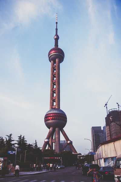 Якобы радио- и телебашня, внутри трех сфер радиотелевизионной башни «Жемчужина Востока» расположены магазины, гостиница и научно-фантастический город. На вершине вращающийся ресторан. Строительство началось в 1991 году и было завершено в 1994 году. При высоте 368 метров это было самое высокое здание в Китае, пока в 2008 году не был построен Шанхайский всемирный финансовый центр.
