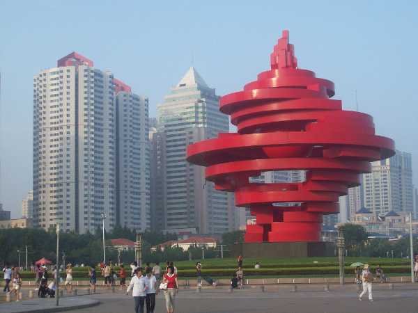 7. Этот город с населением 3,7 миллиона человек является морским портом на северо-восточном побережье Китая, название которого означает «зеленый остров». Он стоит на восточной оконечности самого длинного в мире моста над водой, протянувшегося более чем на 41 километр через залив Цзяочжоу. Что это за город, где на центральной площади возвышается впечатляющая скульптура Уюэ Фэна (на фото)?