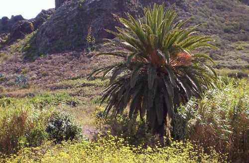 Сок этого дерева можно использовать для производства пальмового сиропа, и это промышленность острова Ла Гомера на Канарских островах. А что касается того, что ее называют ананасовой пальмой, то это потому, что ее толстый ствол в молодом деревце напоминает ствол ананаса, как на картинке.