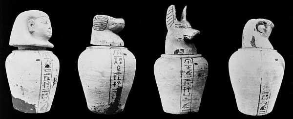 В четырех канопах хранились внутренние органы или внутренности умершего. Поскольку органы содержали много воды, они способствовали бы быстрому разложению тела в жаре пустыни. Поэтому было необходимо удалить их, если покойный мог позволить себе такую сложную процедуру.