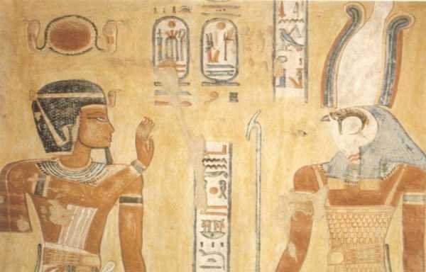 5. Какой бог/богиня неба с головой сокола изображен на этой картине из гробницы 12 века до н.э.?