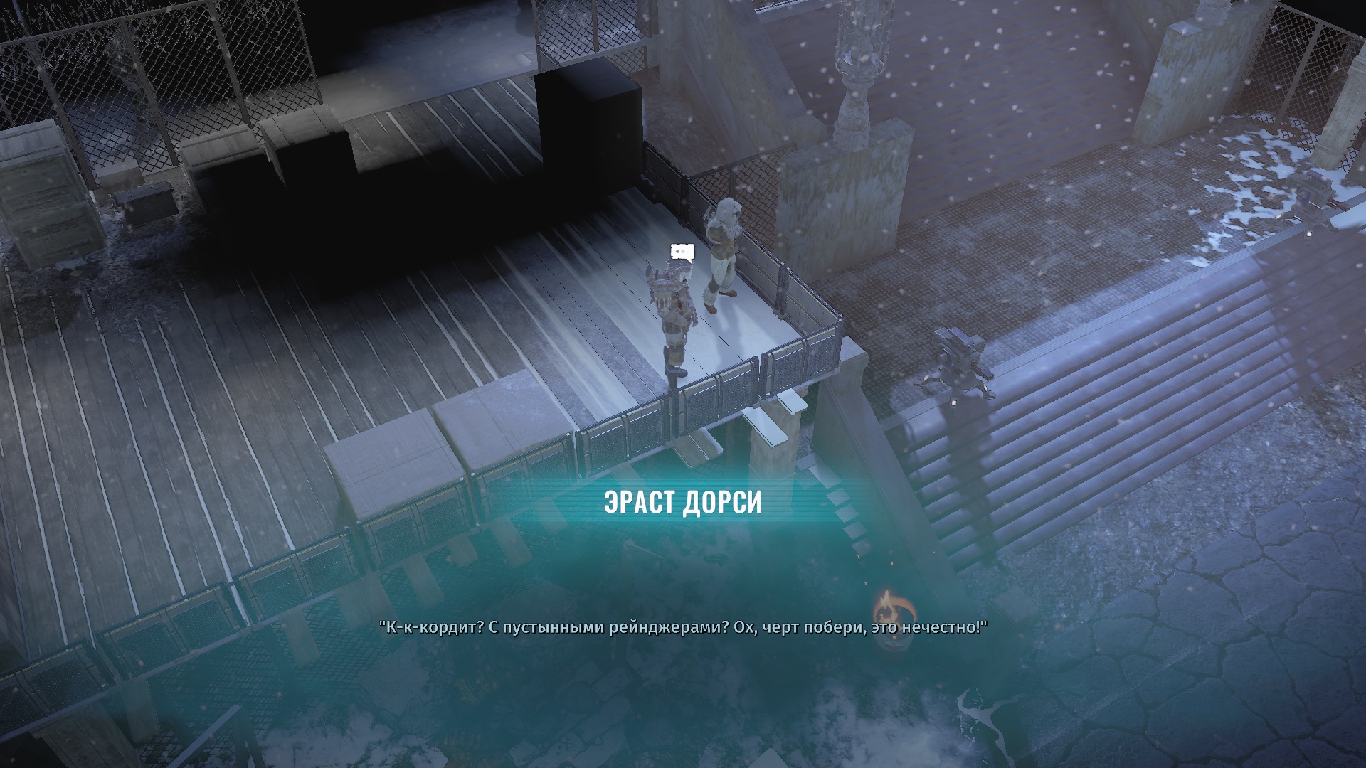 Застрял на этапе "Выходим из ангара и разговариваем с Кордитом". Как с ним поговорить? Автоматом диалог должен запуститься? Кто-нибудь сталкивался, что не получается поговорить?