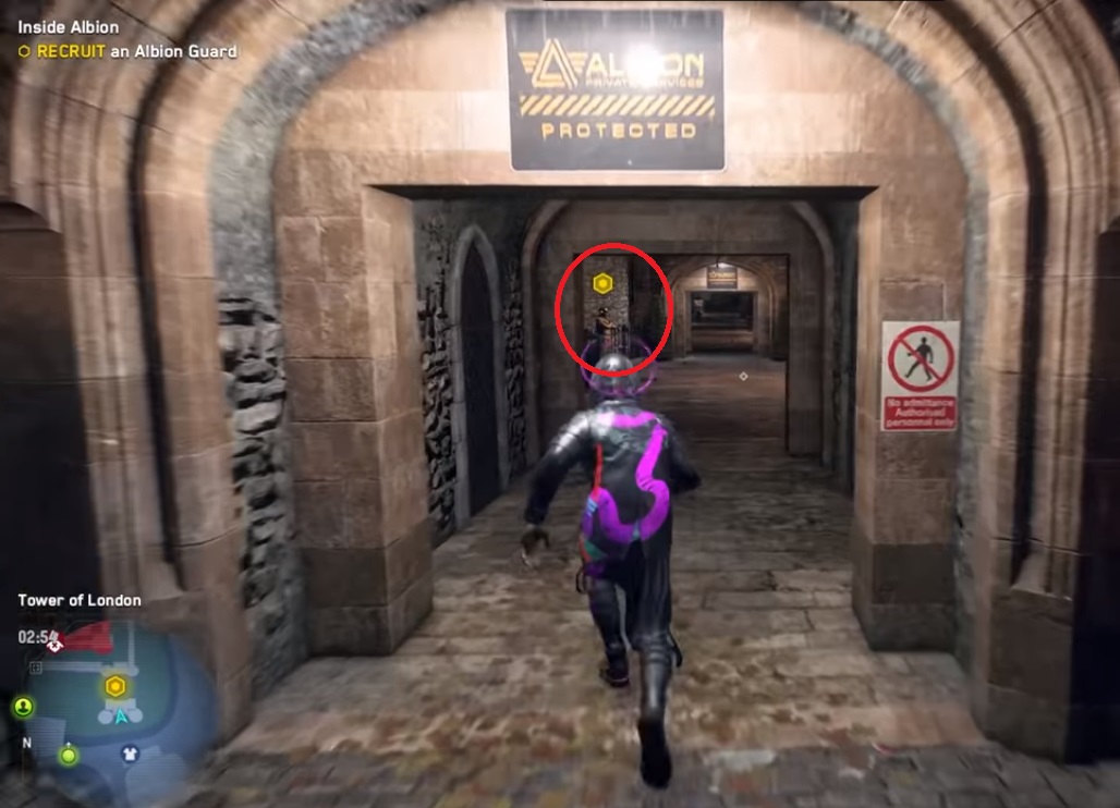 После успешного набора сотрудника из Альбиона переключитесь на нового оператора для следующего шага миссии. Возвращение обратно в Лондонский Тауэр/Белую башню в качестве сотрудника Альбиона дает вам преимущество. Теперь у вас есть униформа.