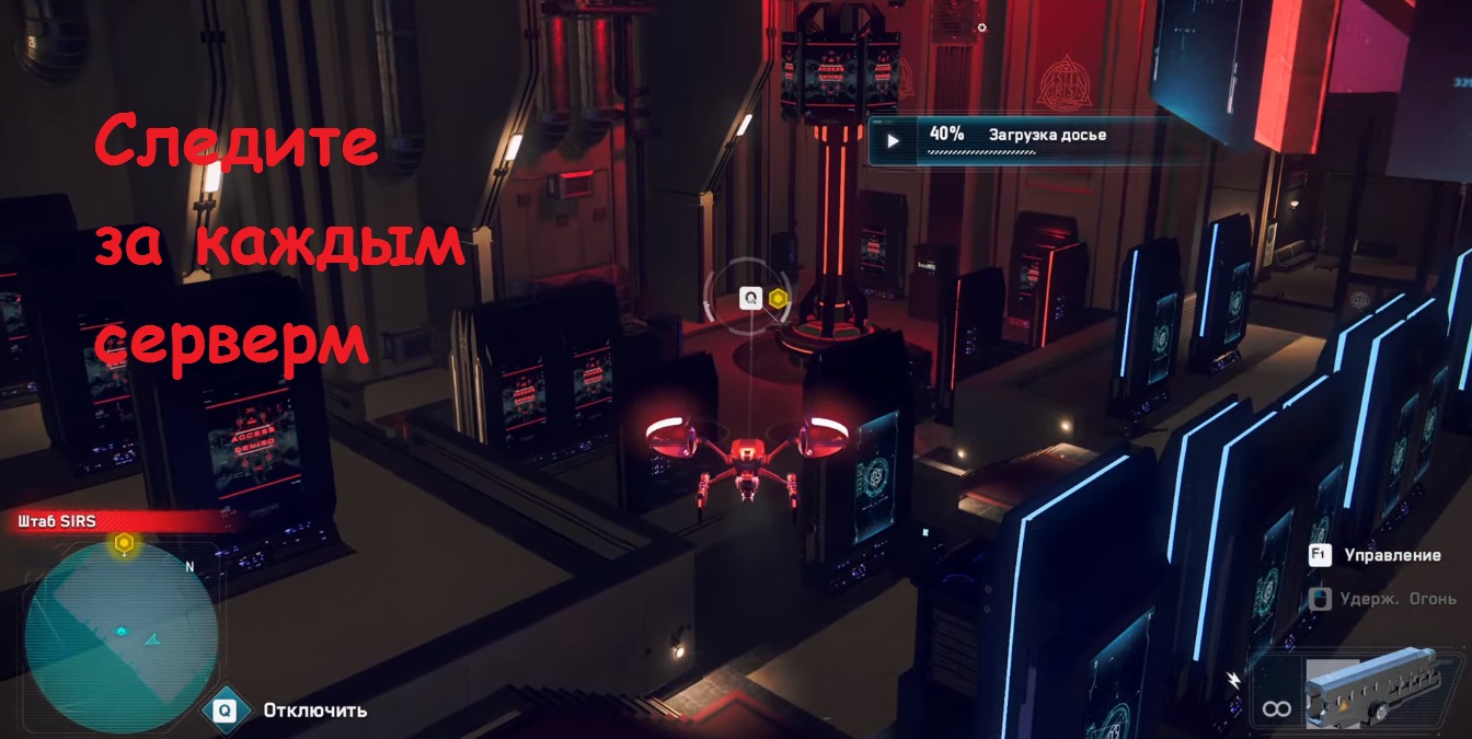 Вас посетит пара охранников, и в основном будут летать назойливые дроны, которые также будут лезть к серверам, как и охранники. Угон СВЧ дрона - это полезный способ борьбы с охранниками и любыми дронами в комнате. Старайтесь не терять из виду, где находится ваш персонаж, чтобы на него не напали охранники.