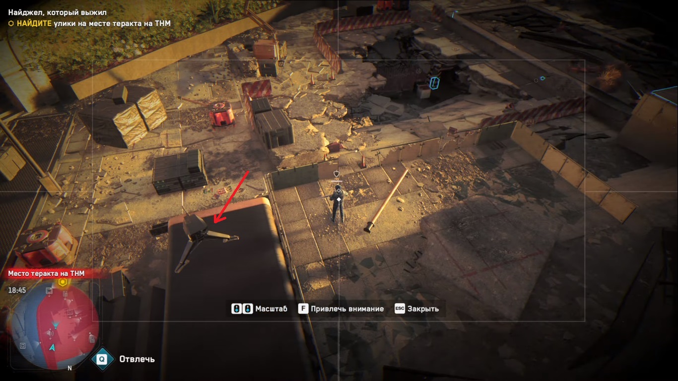 Как только вы доберетесь до места атаки ТНМ, можете сканировать область для поиска разрушенного грузовика. Желтый контур покажет его местоположение на южной стороне запретной зоны. К счастью, вы можете продолжить движение по дороге за пределами запретной зоны почти до самого грузовика. Вы можете бросить паука-робота через стену, чтобы исследовать грузовик на предмет улик. В противном случае вам нужно будет найти другой путь внутрь, чтобы исследовать грузовик. Например, вы можете использовать ближайшие запертые ворота, грузовой беспилотник или захватить турель и всех перестрелять.