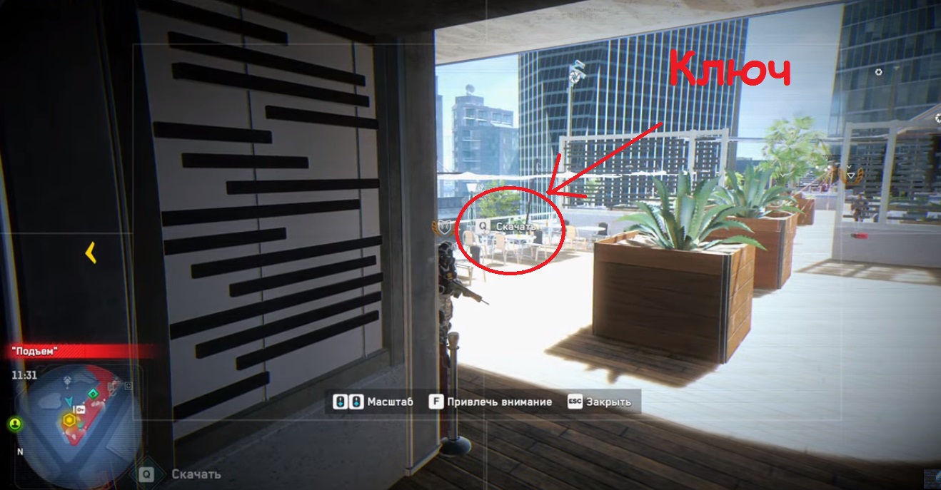 Далее, когда у вас есть ключ, вам нужно будет добраться до крыши, если вы планируете шпионить за тайной встречей. Вы можете подняться по оранжевым трубам на северной стороне здания. Обычный и наиболее простой метод для шпионажа в данном случае - это использование робота паука, отправьте его в комнату с концентратором ctOS. Затем нажмите кнопку камеры. Это обеспечит доступ к камере, где вы можете захватить камеру ближе к встрече. После окончания ролика покиньте запретную зону.
